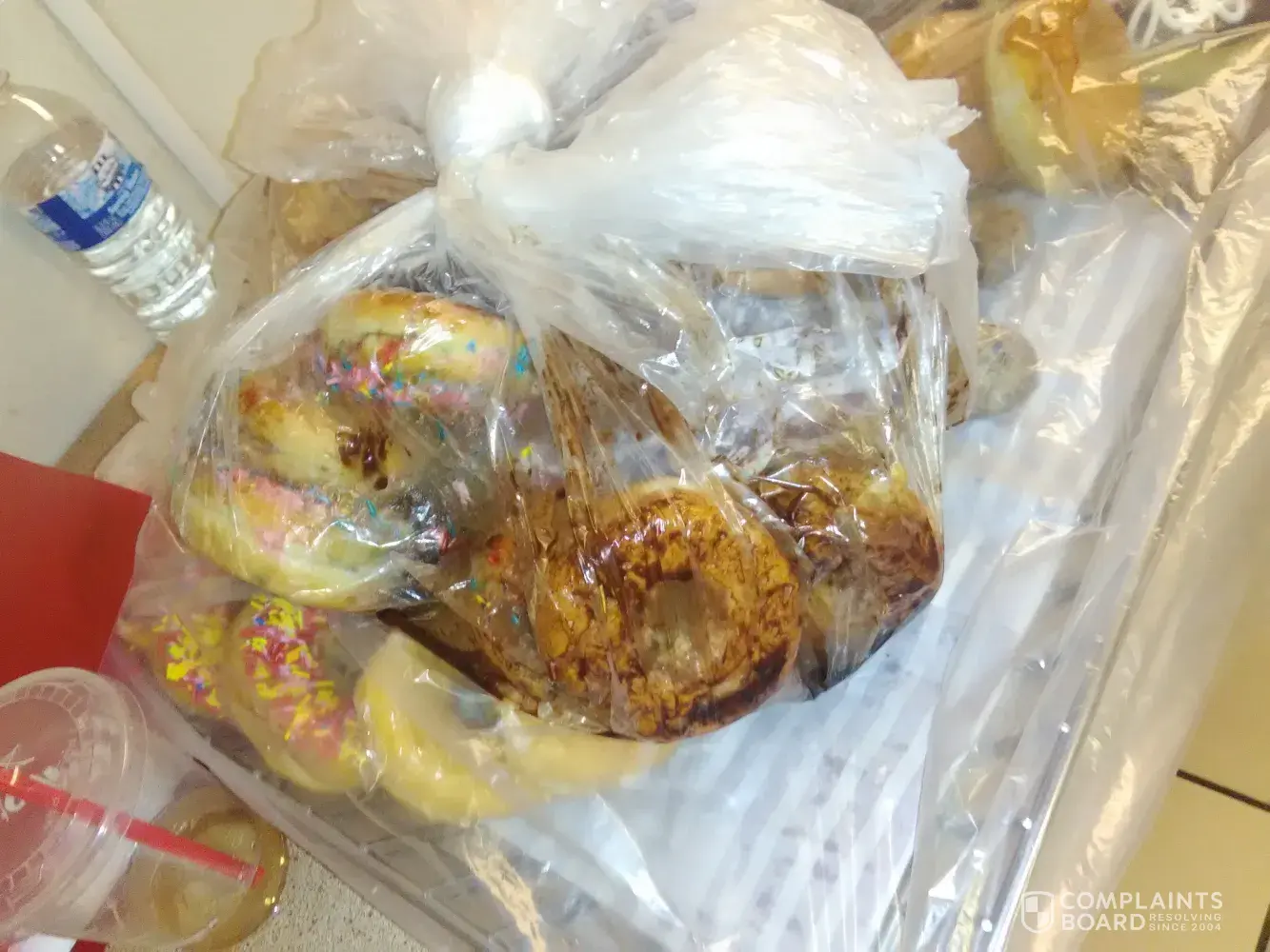 I have been driving from St. Thomas, Ontario to Toronto, Ontario for the past 8 Fridays and have stopped at the Cambridge North Travel Plaza Tim Horton's several times. First time I stopped I ordered the grilled chicken Caesar wrap and a glass of ice water (I don't drink coffee or tea). I asked for no tomato and was quite sharply told there isn't tomato on the grilled Caesar wrap. I was told I would get my cost when I got to the window which isn't a big deal but unusual. When I got to the window, I paid for my order and received my wrap. As I pulled away I realized I did not get my water. Strike number one. Then when I opened the wrap I discovered it was not grilled but breaded. Strike number two. Of course there was no way to go back so I ate the wrap without a drink. Not a happy customer.
