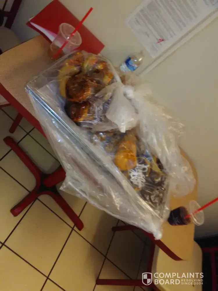 Next time I went through I was very definite when ordering that I wanted the wrap grilled and not battered. Also ordered potato wedges and water. Got to window, paid, got my order with the water and left. Opened the Caesar wrap only to find tomato on it! Strike four.