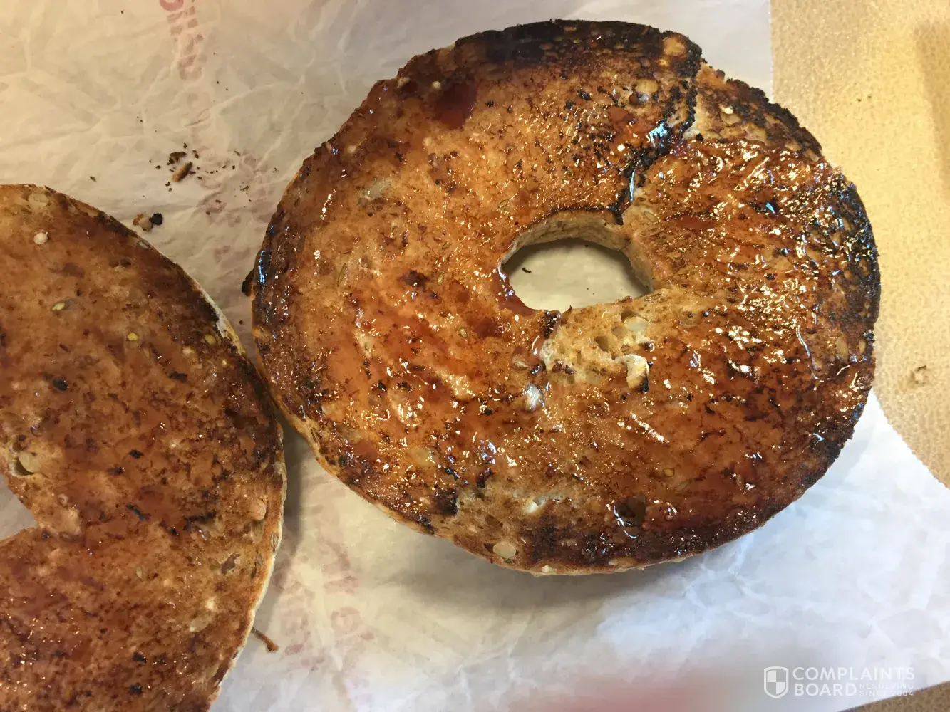 We found out the bagels that my 4 and 9 yrs old boys having were totally unacceptable and extremely disgusting, those were way over burnt. Since it was too dark and kids were hungry, they mostly ate the whole Black Burnt Bagel.