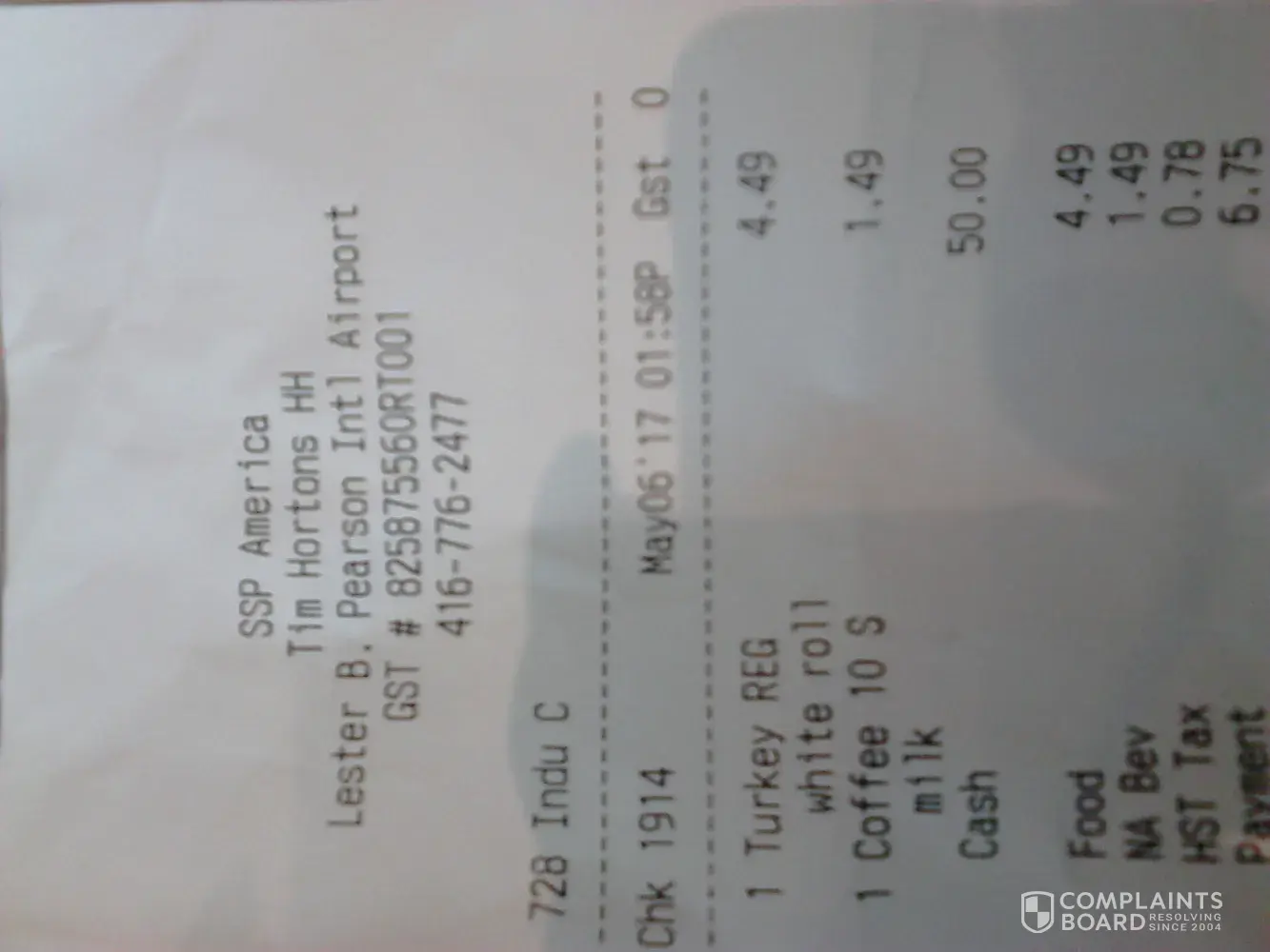 Tim Horton's has always been one of my favourite places, but my last experience at Toronto's Pearson International Airport has left me with a rather bitter taste. Before my long flight to Europe on May 5th, I wanted a quick meal, so after clearing security, I went to the Tim Horton's for a coffee and sandwich.