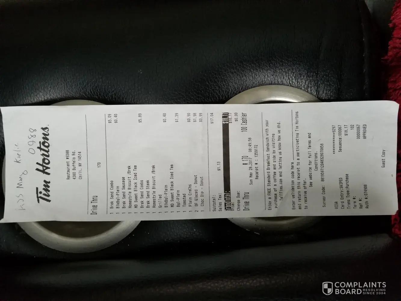 The people who work at Tim Hortons stole money off of our gift card. Today (Wednesday, May 24th, 2017) my mom and I went to Tim Hortons to order something to eat. When we placed our orders, my mom proceeded to pay with a gift card. It was a new $50 gift card and we had already used it 4 times to buy steak and cheese paninis. This time, we bought the exact same thing as before. $3.59 was on it earlier when we went in to buy the food. When my mom swiped by gift card to pay for our food, the cashier said that there was no more money left on it. We talked forever and the cashier said that there was nothing they could do about it. Someone has had this exact same thing happen to them before too. We would not recommend getting the gift cards there. Is there any way this could be solved?