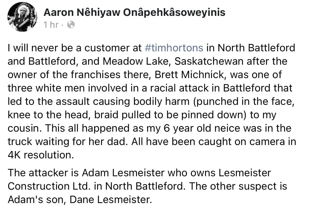 I am forward a picture of what is about one of your managers who beat up a native person in North Battleford, Saskatchewan. It has been on the news as well as all over Facebook is where I took this picture from. Please do what is right and fire this man. This is not what you are all about I am sure.