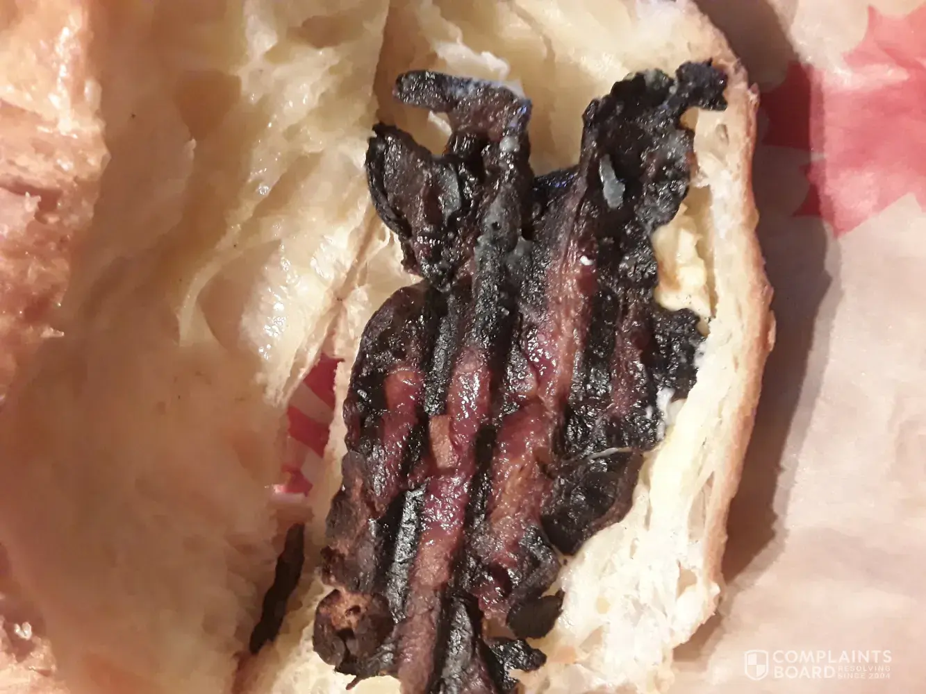 I ordered a cheese croissant from one of your Tim's here in Fergus and asked for crispy bacon and this is what I opened when I got home. And you wonder why I've complained so much about getting raw bacon so I started to order crispy and this is what I got. I can't believe they served me this. I've shown this to other people and they couldn't believe that Tim's actually expected me to eat this not to mention that once again the croissant was plain not cheese like I always ask for. Never again. I'm done with Tim's for sure now after getting this.