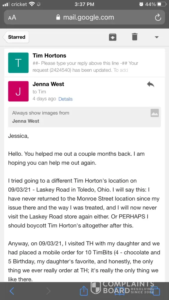 Tim Hortons Complaints Page 25 of 151