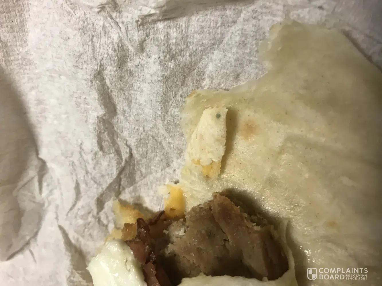 I used a Tim hortons restaurant round the corner from where I work I ordered the breakfast wrap meal, so I got half way through my meal before I realised it had green mould on the wrap. I was so disappointed and disgusted with what I saw I felt sick all day in work regarding this issue, I have heard such nice feedback regarding this restaurant so I decided to try it out for my self. What a disappointment