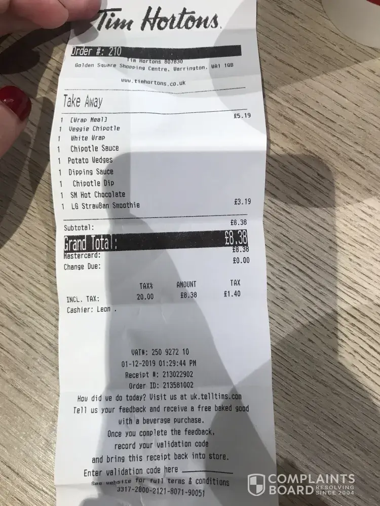 g the order & NOT after I have paid.Sorry, Timmie but your day has come.McDonald, s all the way from now on...their coffee is cheaper, bigger cups & tastes better.