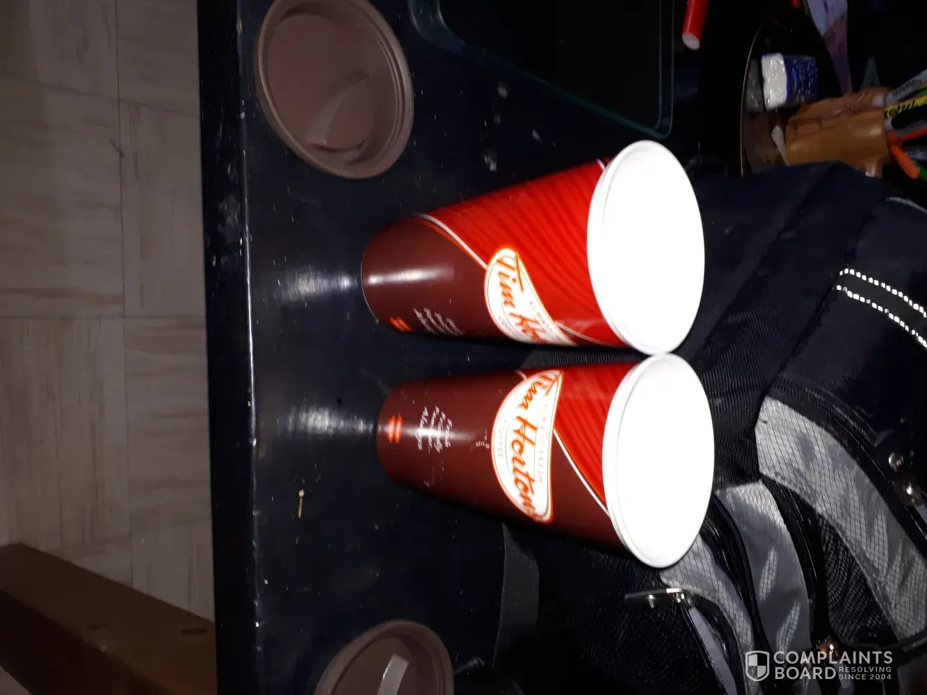 So I put the other 2 in the original boxes. And in the stash cupboard they went. Kids are older. Now so as i was cleaning, i pulled them out. I have been bouncing between the two for about month or less. I like my morning coffee.. I noticed a short while ago there was a funny taste near the end of my morning brew. So i just discarded it down the sink and washed my cup. A few weeks past I noticed a really gross nasty taste next near the end of my coffee. So again I discarded my coffee and put it in the sink to be washed. My mother has recently moved in with me and does the dishes occasionally. She told me something was wrong with my cup. So we inspected it. We noticed a break threw in the bottom inside. the old coffee and dishwater and ewwwwwws were being left in the inside of the cuo. Then as i DRANK my coffee and reached the bottom of the cup. This disgusting mix of Rot was meeting my fresh coffee. I wasn't feeling well and can not prove this was the only factor in my recent illness. But i believe it was. Asi felt better shortly after i stopped using my Tim Hortons cup. I now always second guess my coffee. And it is really hard to except any drink unless it is from a glass that i have inspected. I then felt it necessary to check out my second travel cup. Not only is the paint coming off the two. But It as well was coming apart on the inside. It had developed a hair line fracture like old porcelain would. I feel so silly, and not in a happy silly way. Having this new phobia is quiet embarrassing. I have the cups still . And i need to be herd. It has crossed my mind that mind that im not the only person who thought Tim Hortons was a reputable company with great products. And im not the only person to have purchased these travel cups as the lid is the best design i have seen and easy to clean and store. Im 39 and in alright health, less some bone issues. What if a 80 pound old lady drank this Rot that i had consumed? Or anyone with a low immunity. They would not have dealt with this situation in the manner. I'm taking it upon myself to make this complaint . With the exceptions there will finally be a recall on these cups. And maybe a little apology gift certificate would be appreciated. I don't enjoy take out any more. But i like the k cups. I will send pictures of the cups. And the smell of the rotten one is undescribable.