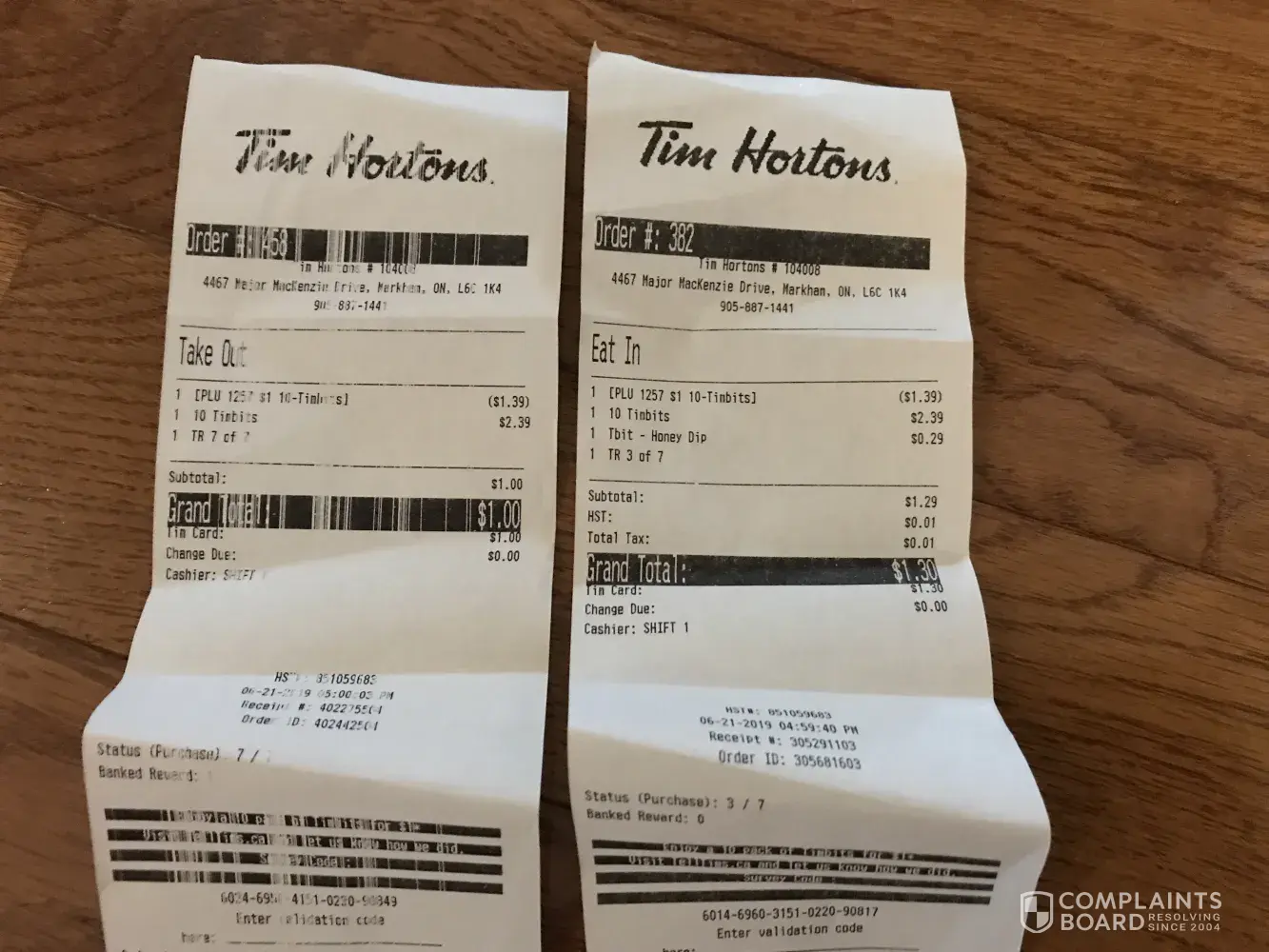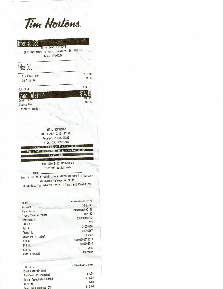 I did the Tim Hortons survey where you only need to pay $1 for a pack of 10 timbits. I gave it to the cashier and she charged me $1.3. I know this is the wrong price because the other times I ordered this it was $1 and my relative who was ordering right beside me also had the 10 timbits for $1 and only had to pay $1. This happened today which is June 21, 2019.