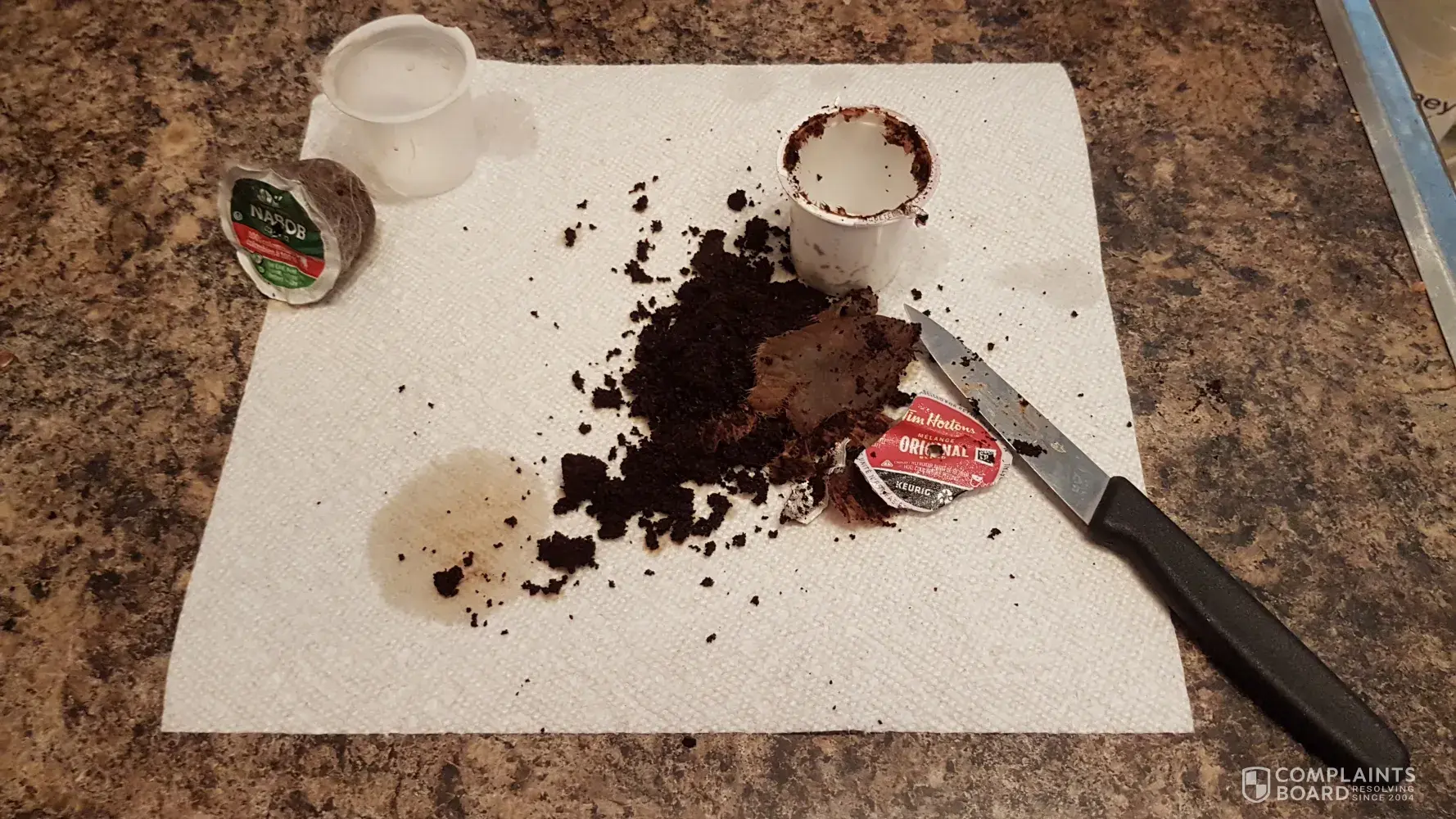 These Tim Hortons pods have forced me to McCafe! The TH pods are impossible to take apart without making a mess and the the netting has to be scrapped out with a knife. Terrible quality control.