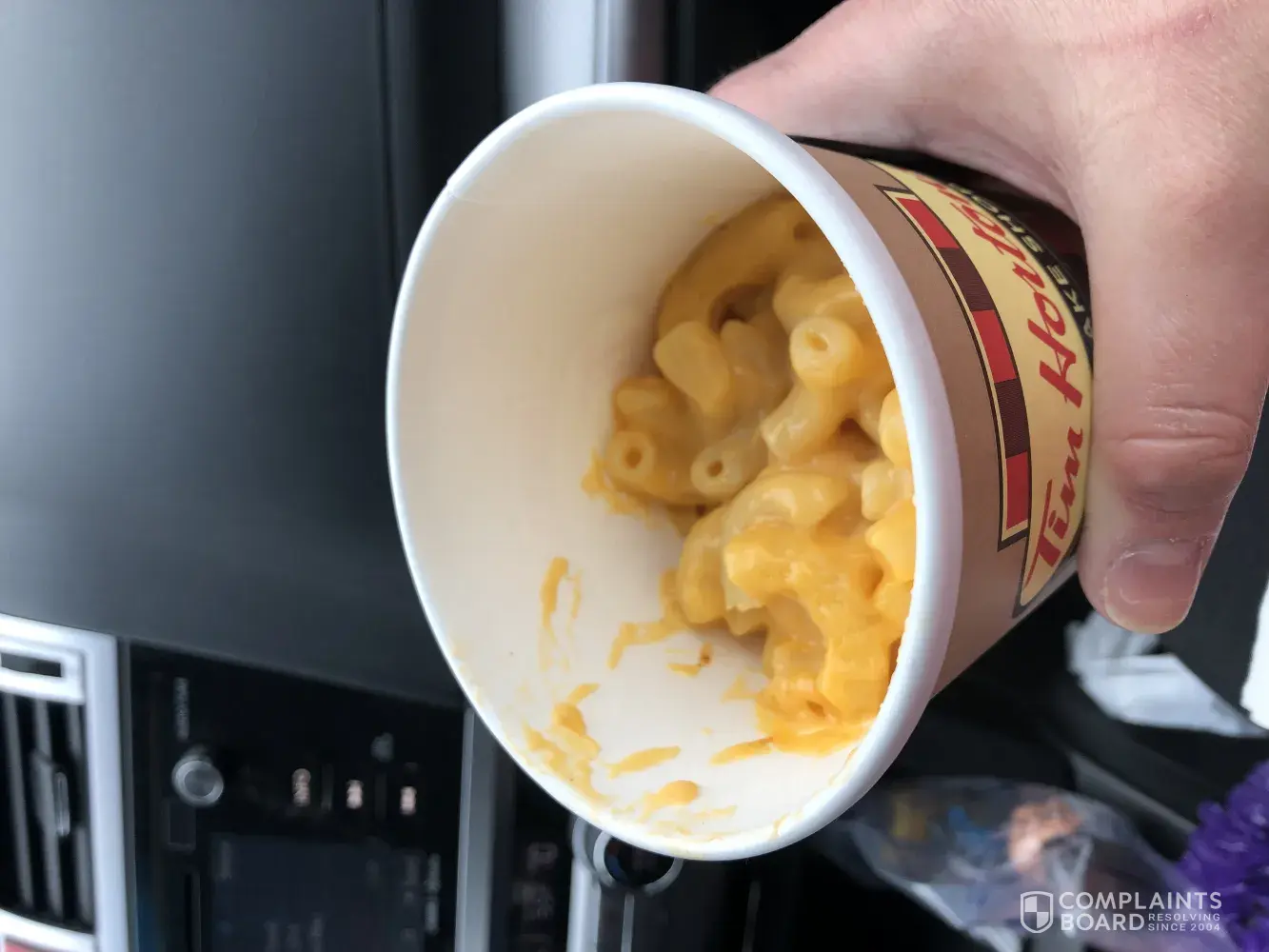 I went to the Tim hortons in North Tonawanda on 849 young st and I got about a 1/4 cup of Mac and cheese! That's outrageous for 3.99! I was never so disgusted in all my life! I will never order any food from there again! That is such a rip off! I went back in to complain and one girl just said uh oh and walked away the other guy said well that's what the size is that it is pre packaged. They wouldn't do anything about it...😡