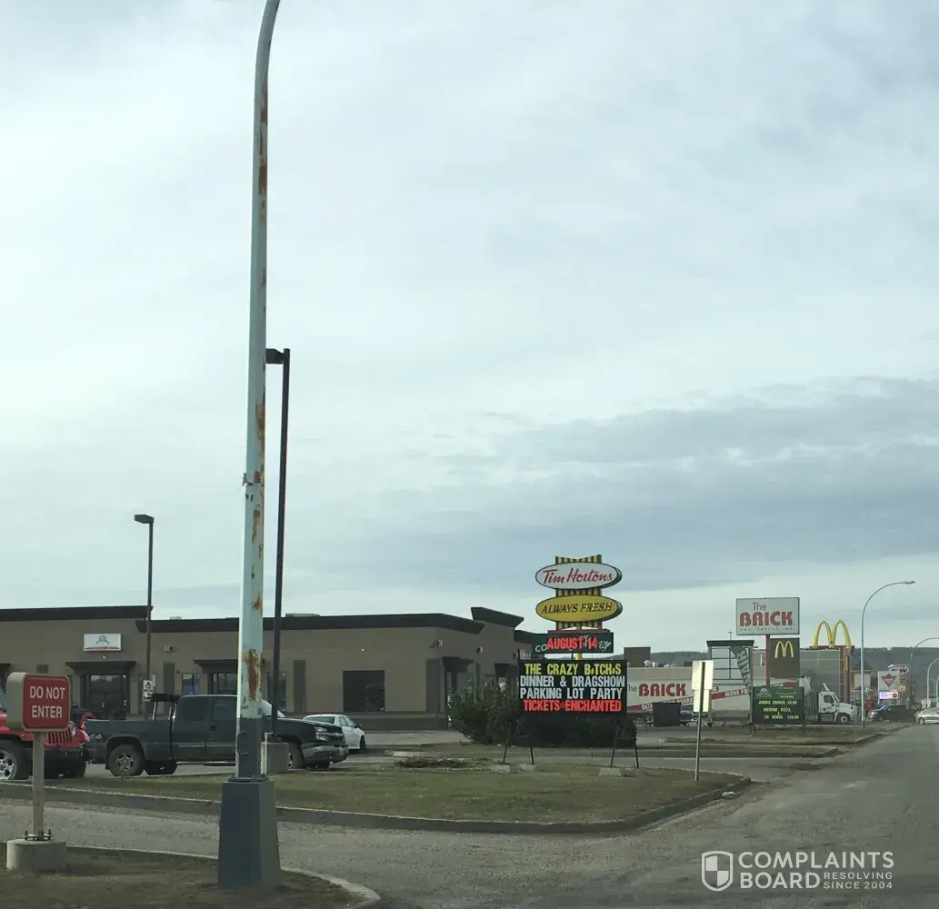 The Tim Hortons sign in front of business is inappropriate for young people and I am appalled that Tim Hortons would allow the sign! I find it offensive and I will boycott the restaurant because of this. I thought that this was a family restaurant but this sign does not represent family.