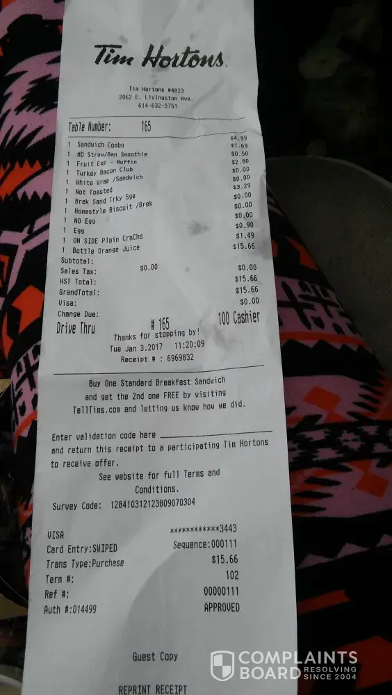 Jan 3, 2017 i order a turkey bacon club meal an a turkey sausage meal. I did not receive all of my food. She claimed i did not pay for a meal an would not give me the rest of my order .We waited over 10 min to get my receipt.Customer service was very bad