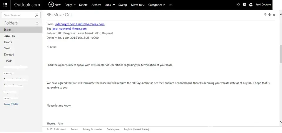 To top it all off, after speaking with the general manager it was decided that our lease would be terminated as of July 31st and we would move out. Sixty days notice was given and plans were made to move out. The day before we move, me being the courteous people that we are, we called to let the new building manager know what the plans were. After things were all set, receiving a call back from the building manager and rental agent was something we weren't expecting. They called because no one had told them that we were moving out, what our reasoning was, and that sixty days notice had been given sixty days prior. How on earth can a business thrive or have any success if there is no communication? We truly don't understand.