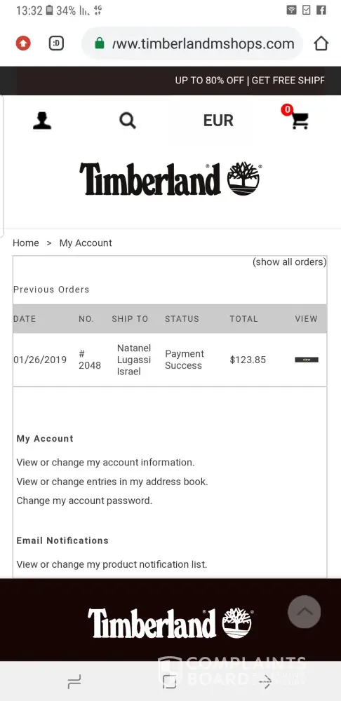Timberland Paid for merchandise that never came