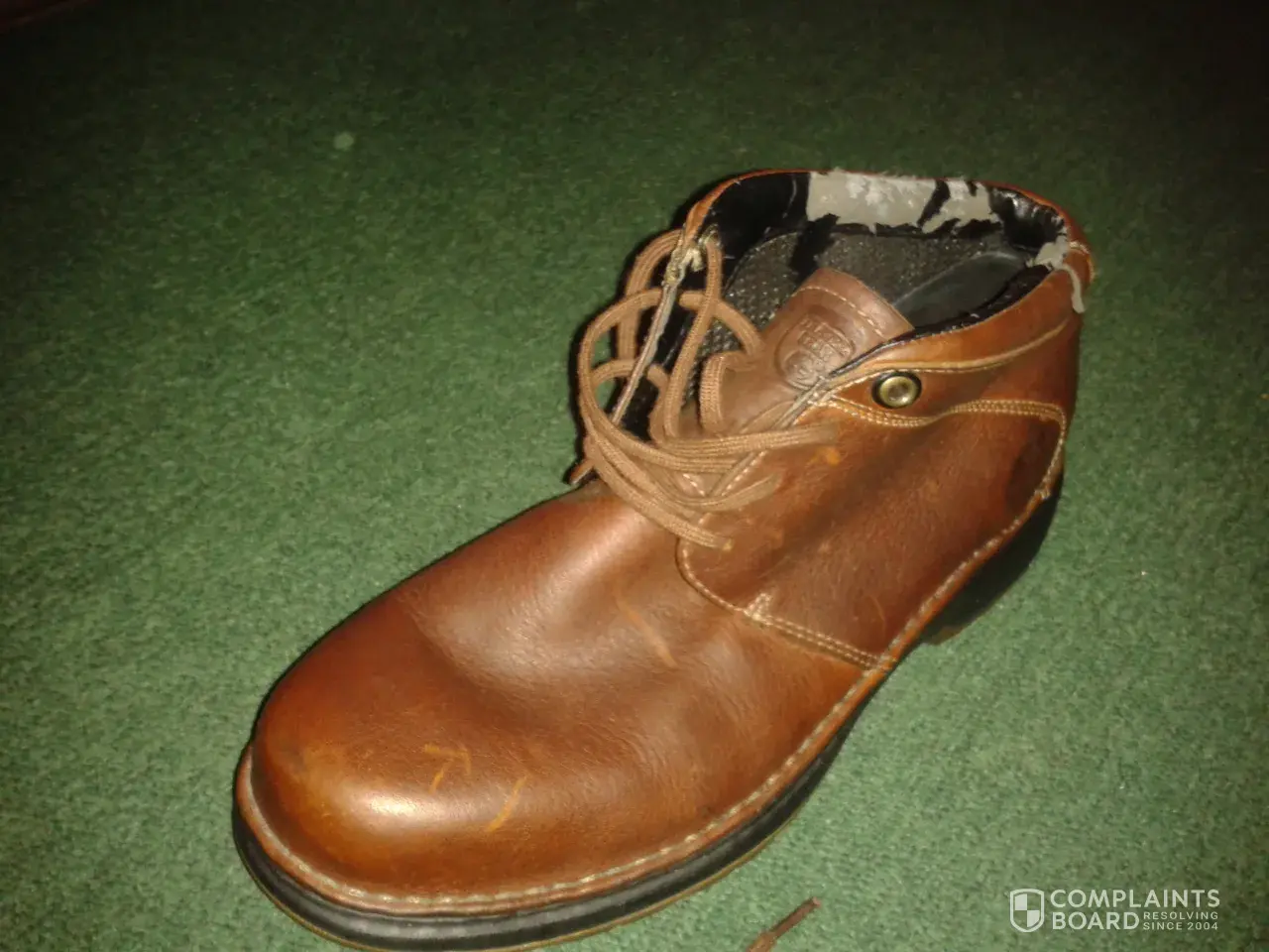 my name is marius acatincai i was buying a pair of boots timberland in 6/23/13 at 3;43 pm from store super shoes store 003 3050 north 5th street reading, pa 19605 and my complain is today 8/18/13 after almost 2 months they broke the leather on the right boot and
