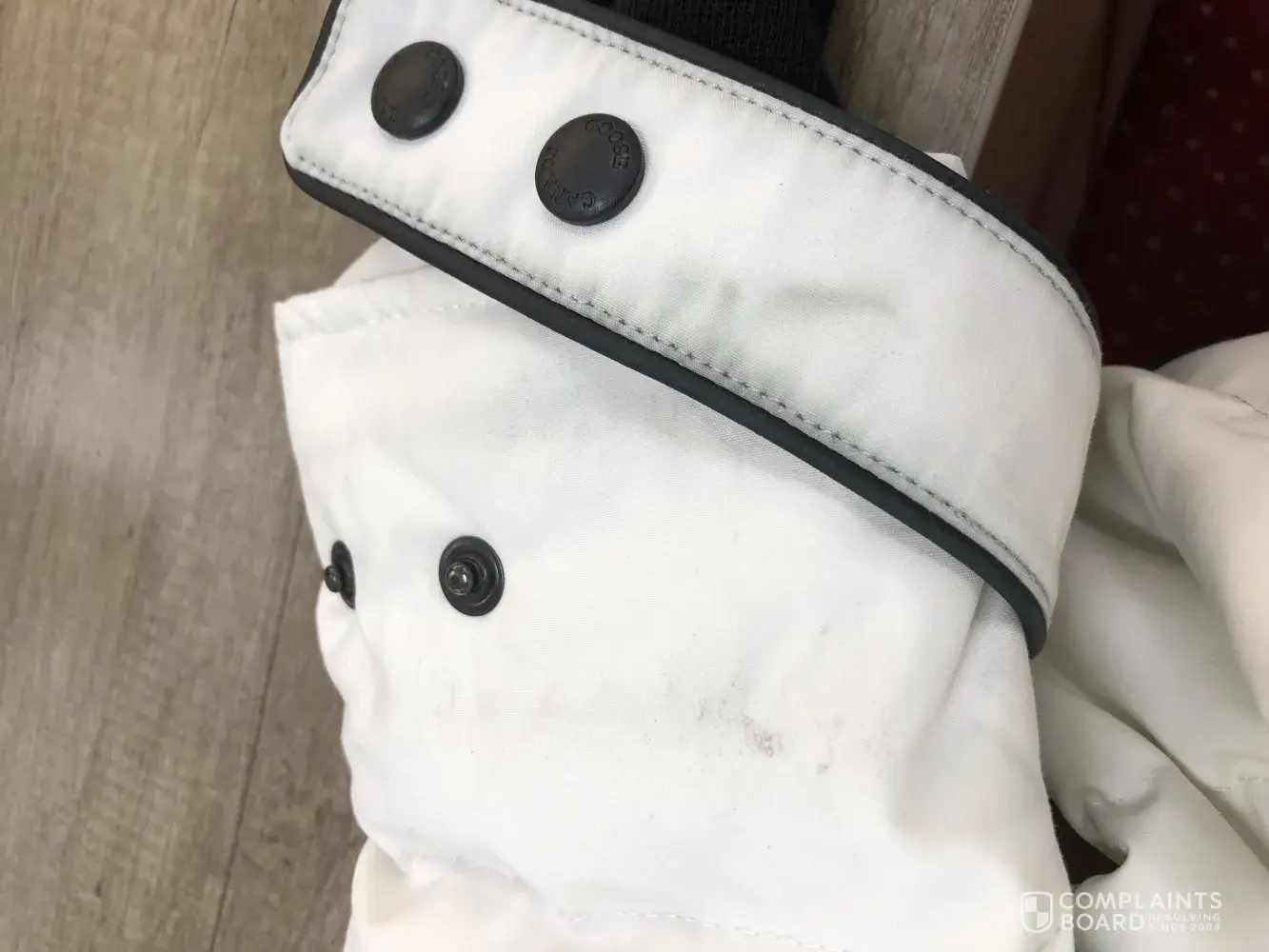 Please can you advise me if this is a manufacturer fault as the black colour trimmings around the jackets when washed or wet let's o a black colour and as a ta result stained my coat as it is white. If necessary you can contact TIMPSON and discuss this issue with them.