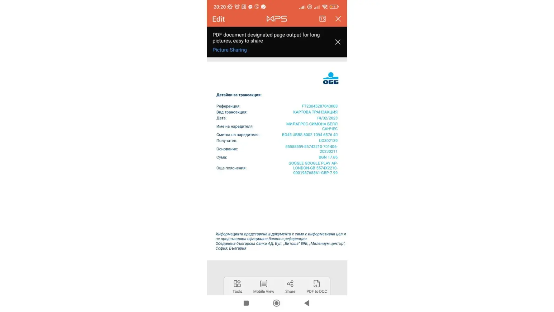 Payment reference: FT23051000056445.