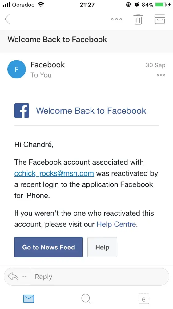 Facebook email: [protected]@yahoo.com