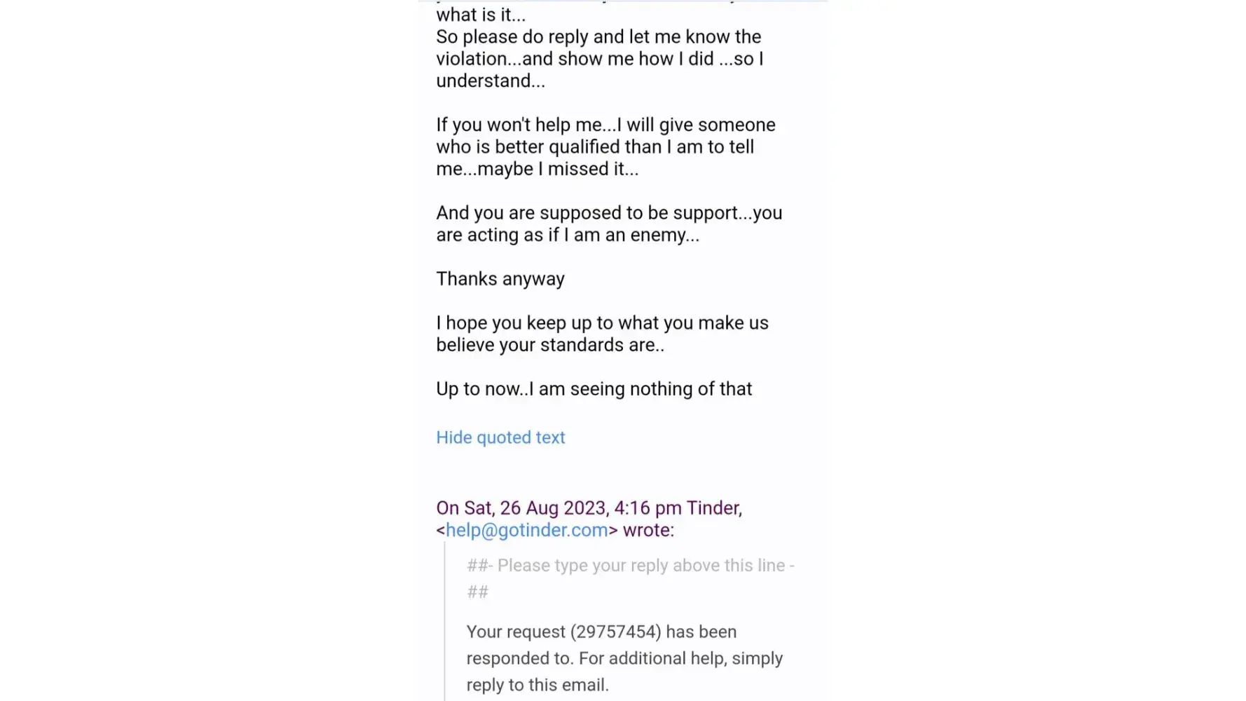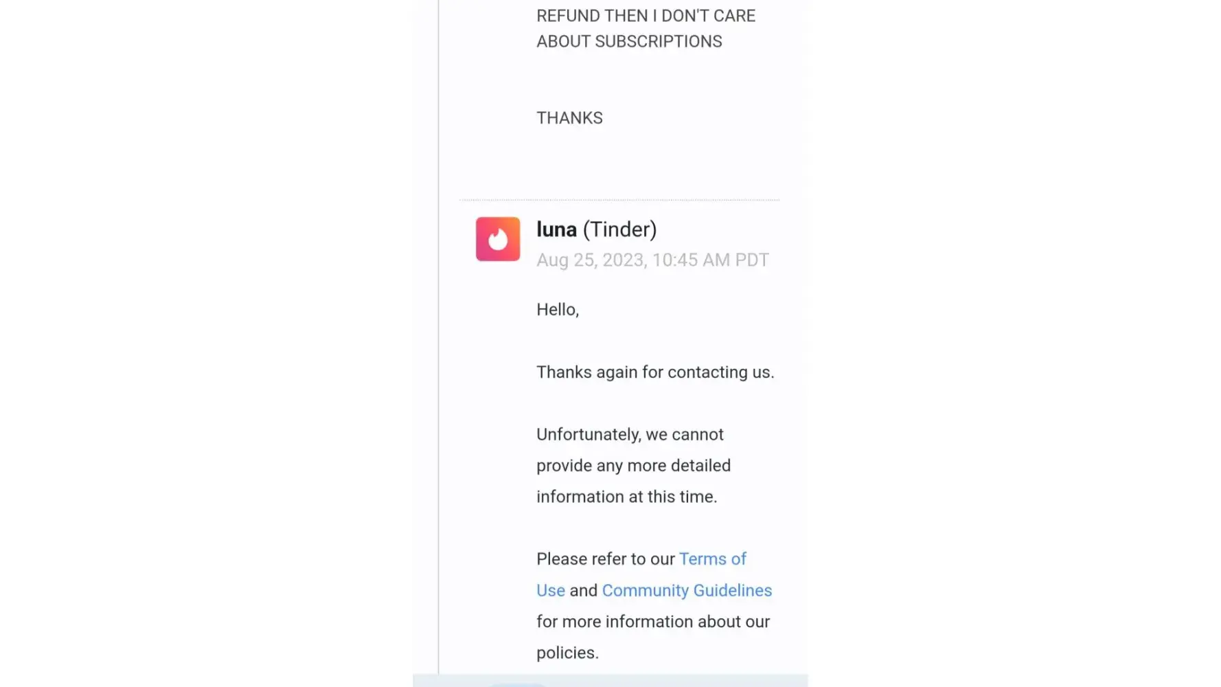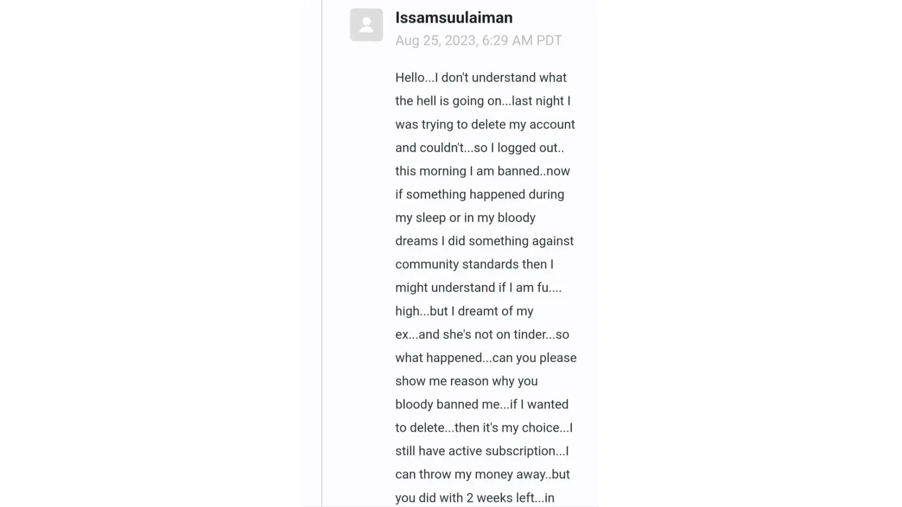 I have had a full refund for my money after sending the complaint to Google Play Services, however I really want to hold Tinder to account for this absurd display of behaviour which it seems they are taking out on so many users. I am going to keep enquiring, as although I am not in need of their service, not knowing why they banned my account is infuriating and unhelpful and Tinder refusing to tell me why is frankly pathetic.