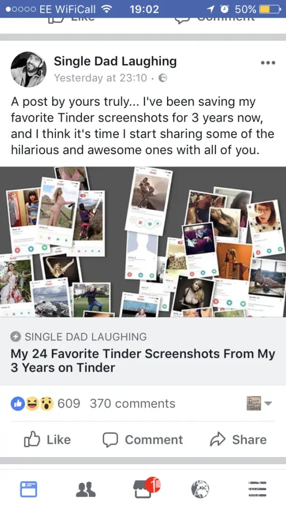 A blogger called "Single Dad Laughing" has collated screenshots from Tinder to ridicule women who are on Tinder.