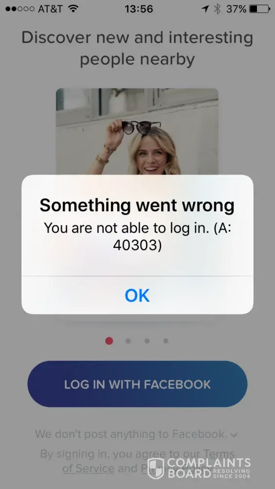 I have been blocked from my Tinder account for roughly two and a half months now. Whenever I try to log in, I am promoted to log in through Facebook which begins to work but then I receive error code A:40303 "You are not able to log in."