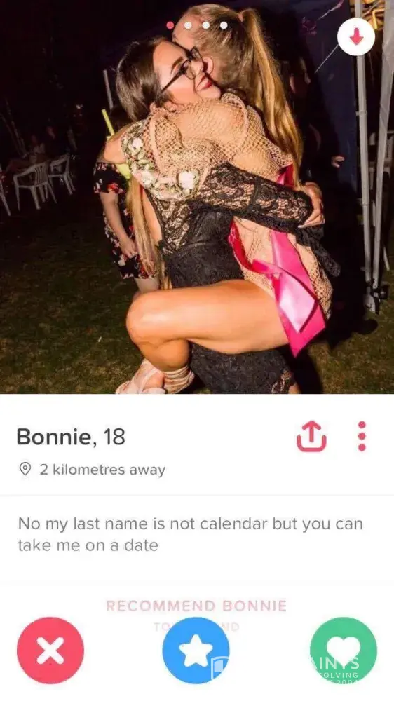 Discovered on May 16, 2017: My daughter, Bonnie Callander has had her image and name used to create a fake tinder profile. This was done as a form of harassment and to deliberately cause her stress. My daughter's Facebook profile picture and her name was copied and used as the profile picture for this Tinder profile. The picture also includes my daughter's friend Jessica Rankcom. Jessica also did not give permission for her image to be used.