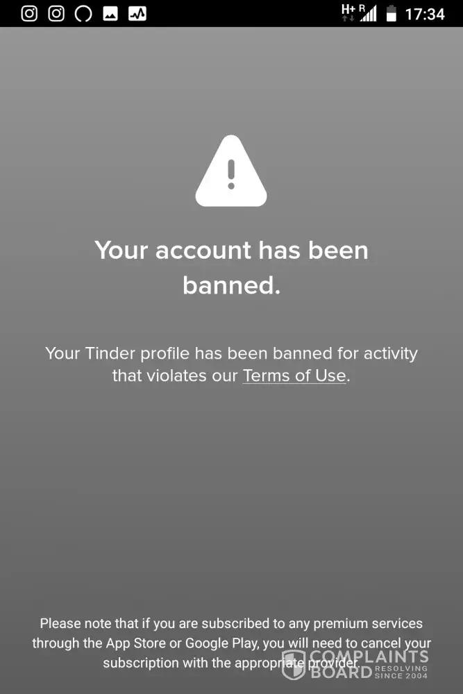 Tinder banned my account without any valid reason and without any notice, and without any explanation after they let me subscribe for 1 year.