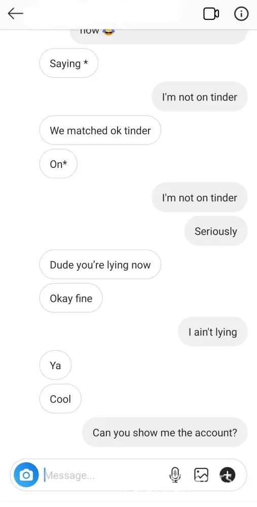 A guy contacted me on Instagram just now. We talked and he asked me about how far was my palace from his college. And I told him it was very far away and he said you said something else earlier. He claimed that he found me on tinder and we matched and we've talked on tinder but I don't have any account on tinder at all. The specific person who is using my pictures as a tinder account is also Telling people that I'm bisexual and more stuff about me. When the guy asked that fake person to give her Instagram, she gave the right Instagram and immediately unmatched with him. To conclude, someone has been using my pictures and info as a tinder profile. Please do something or let me know if I can do something about it.