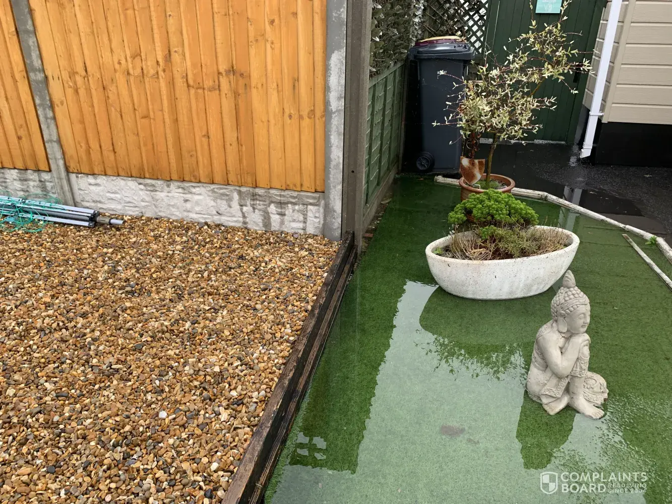 Number 16 was built at a higher level home causing flooding I got in touch with council and it was slightly resolved ( because they only done half a job of rectifying the issue) but now they have giving permission for number 16 to laid a stone patio over what drainage so u can now imagine that this is causing more of a problem I have email Tingdene to just get a response saying that they understand my concerns, emailed them back showing pictures of the flooded area and now they are totally ignoring me, now this is playing on my mind that I can't sleep and getting very upset with the situation as I fought so hard last time just to get a bit of pipe.