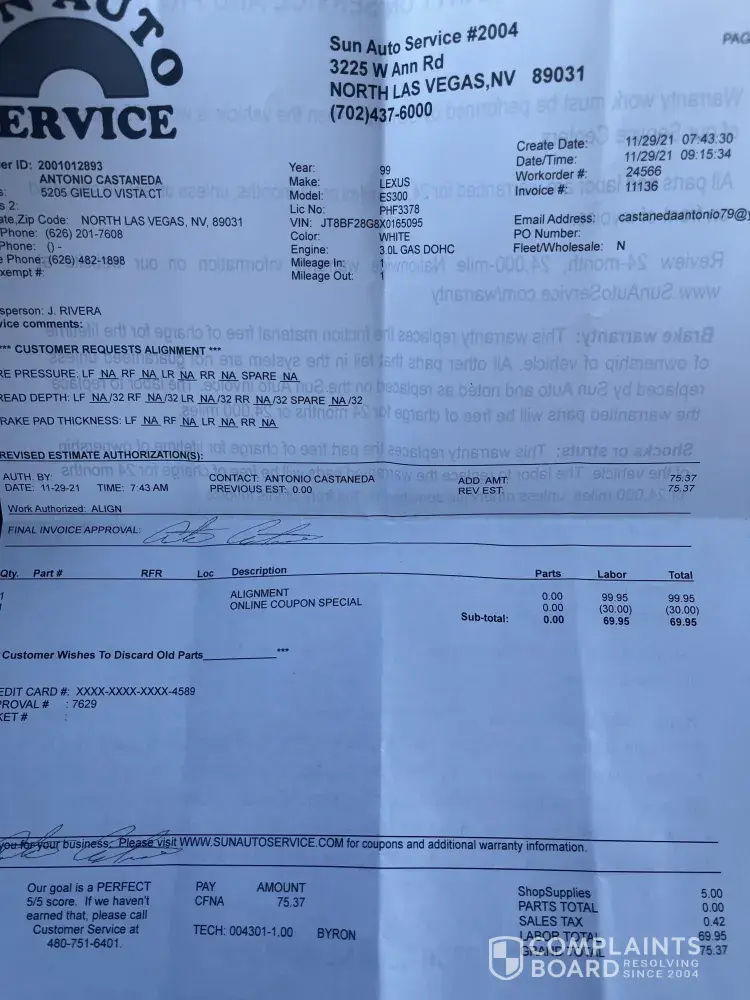 This past december my tire light came on, I went in and had them look at the car. I was told my tires were perfect and there were no problems and that the sensor light was broken which they could replace for around $120. I chose not to purchase. I trusted they knew what they were talking about. I drove to san diego the next day, and got a flat on the way. I called tire works, they told me “you aren’t covered outside of vegas” (Nowhere on the warranty states this) I had to purchase 2 brand new tires in san diego because apparently my alignment was off, and my drive line or rotors are not in fact new, I doubt the brakes were even done either!