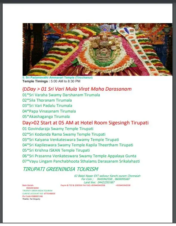 We booked trip from Pune to Tirupati from "Tirupati GreenIndia tourism" Agency for 4 members from 25th Jan to 29th Jan 2023.