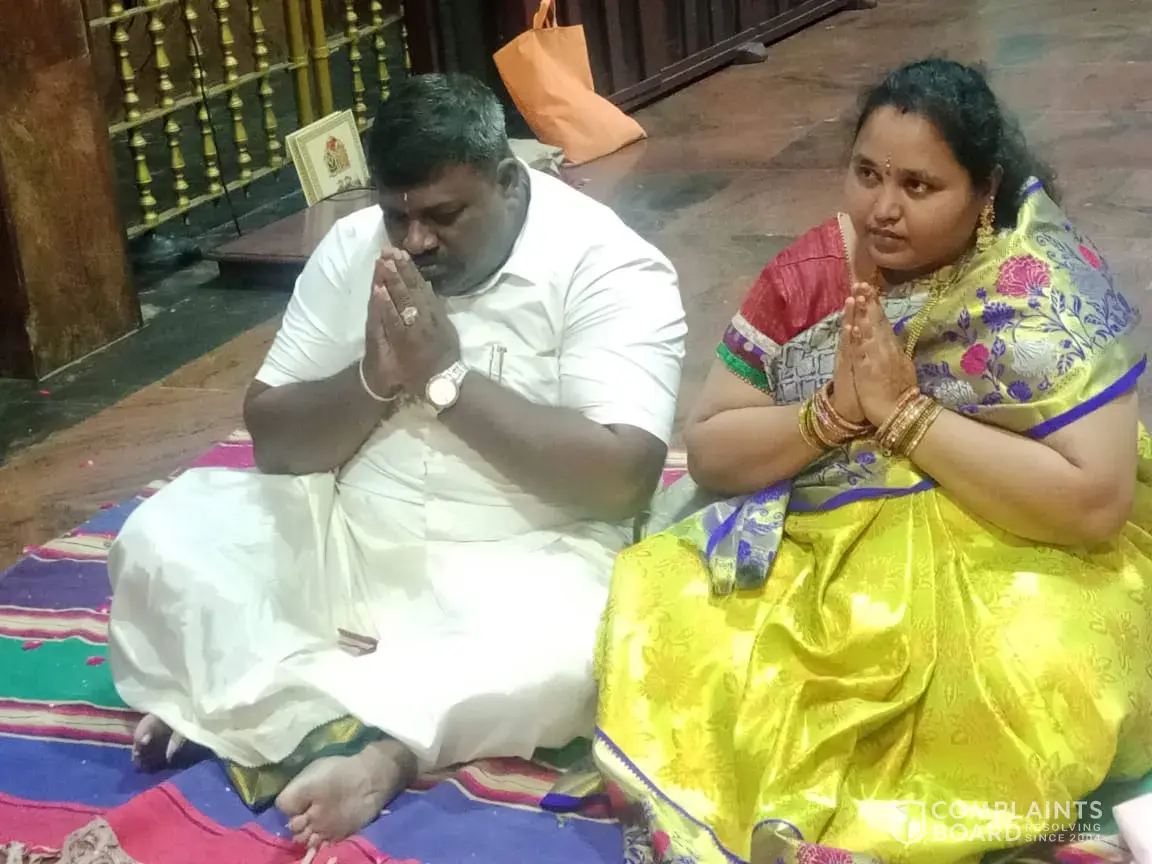 Member in the Facebook Saud that he will arrange kalyanam tickets and accommodation for 26th and we paid him rs.3200. Now he did not responding. His number 7592971986.