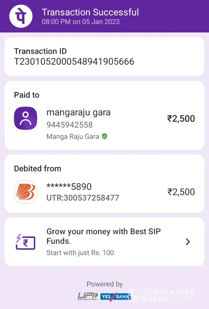 Cheated us for getting ticket for Vaikunth Ekadashi VVIP Darshan Tickets he call me and said he was member of TTD and help to Devotees for getting tickets his name Raju Kataravalli Kandraga he is also protocol controlar @ indian railways so we trusted on him transferred amount of 7000 rupees to him we have his photo and mob number [protected] & his whatsapp number [protected] I'm attaching his photo and my transcription for proof of payment to him