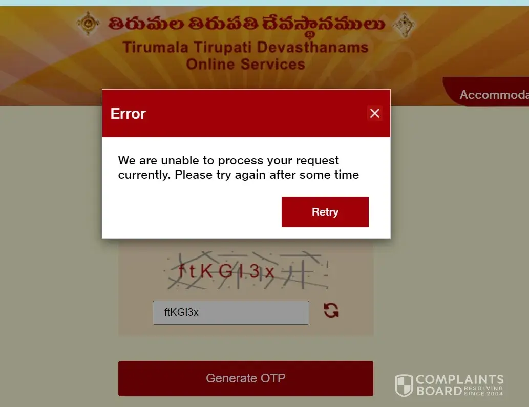From past 3 weeks I am trying to book accommodation but getting the same error as 'We are unable to process currently, try again after some time' every time. What kind of maintenance is it? Your website should give accurate information and it should be transparent. What is stopping you to display if there are no accommodations available. I am wondering whether is there any black market where rooms are being booked? If there is any technical issue, at least you should provide some scrolling or note in the website as it is under maintenance with some ETA.