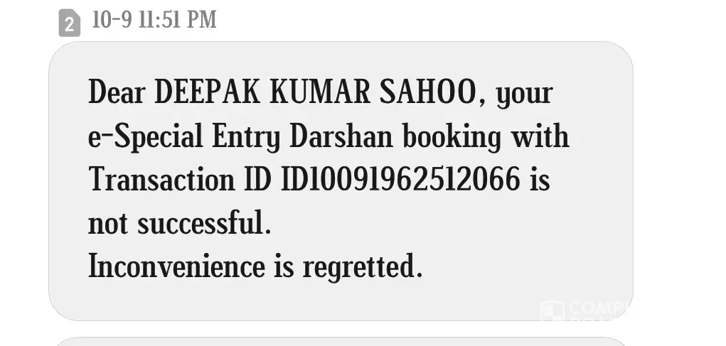 As per the above message, I had booked 5 tickets for a VIP Dharshan and paid an amount of Rs 2000 (5x400) through google pay today( 05/09/2019) by