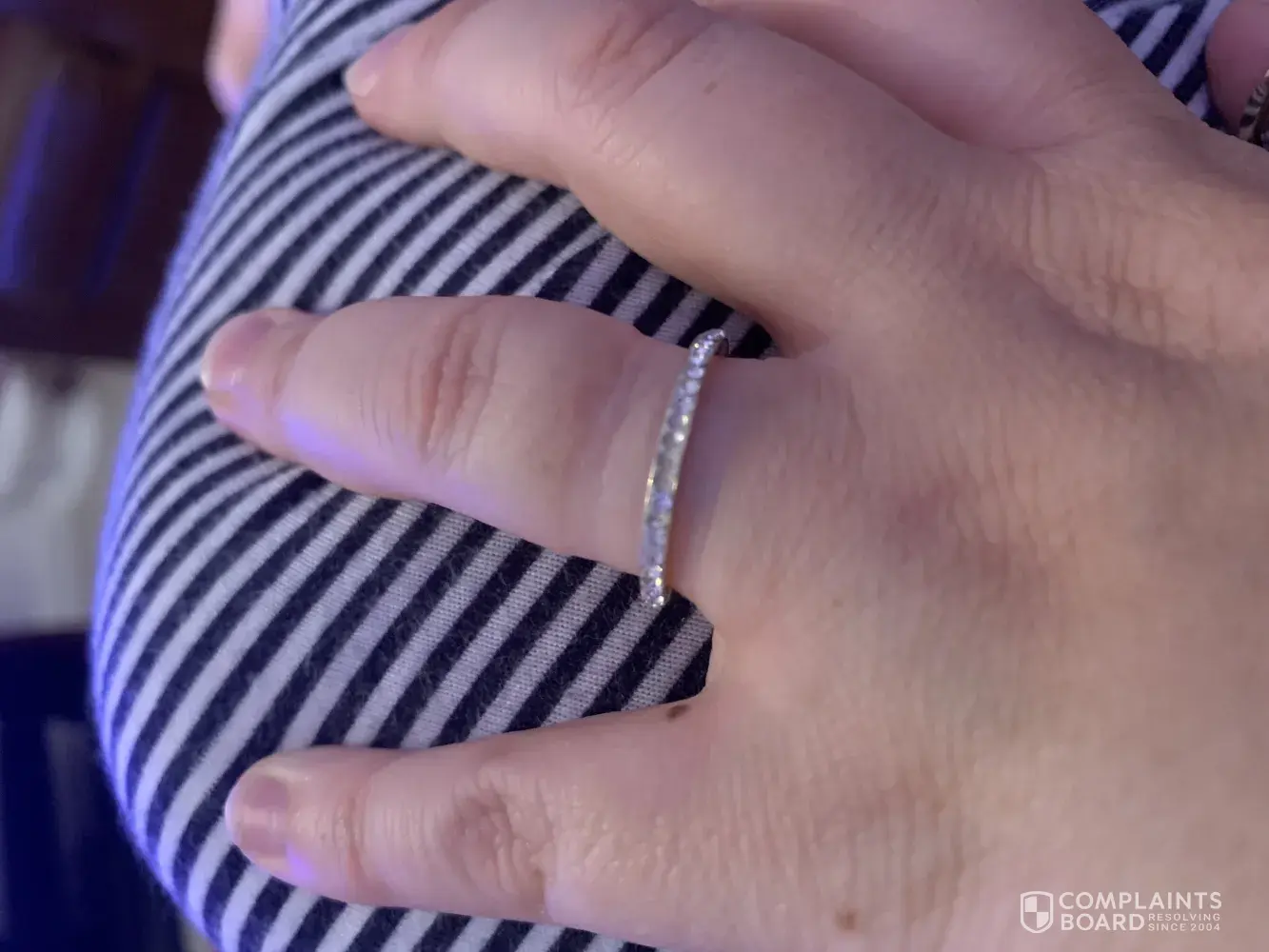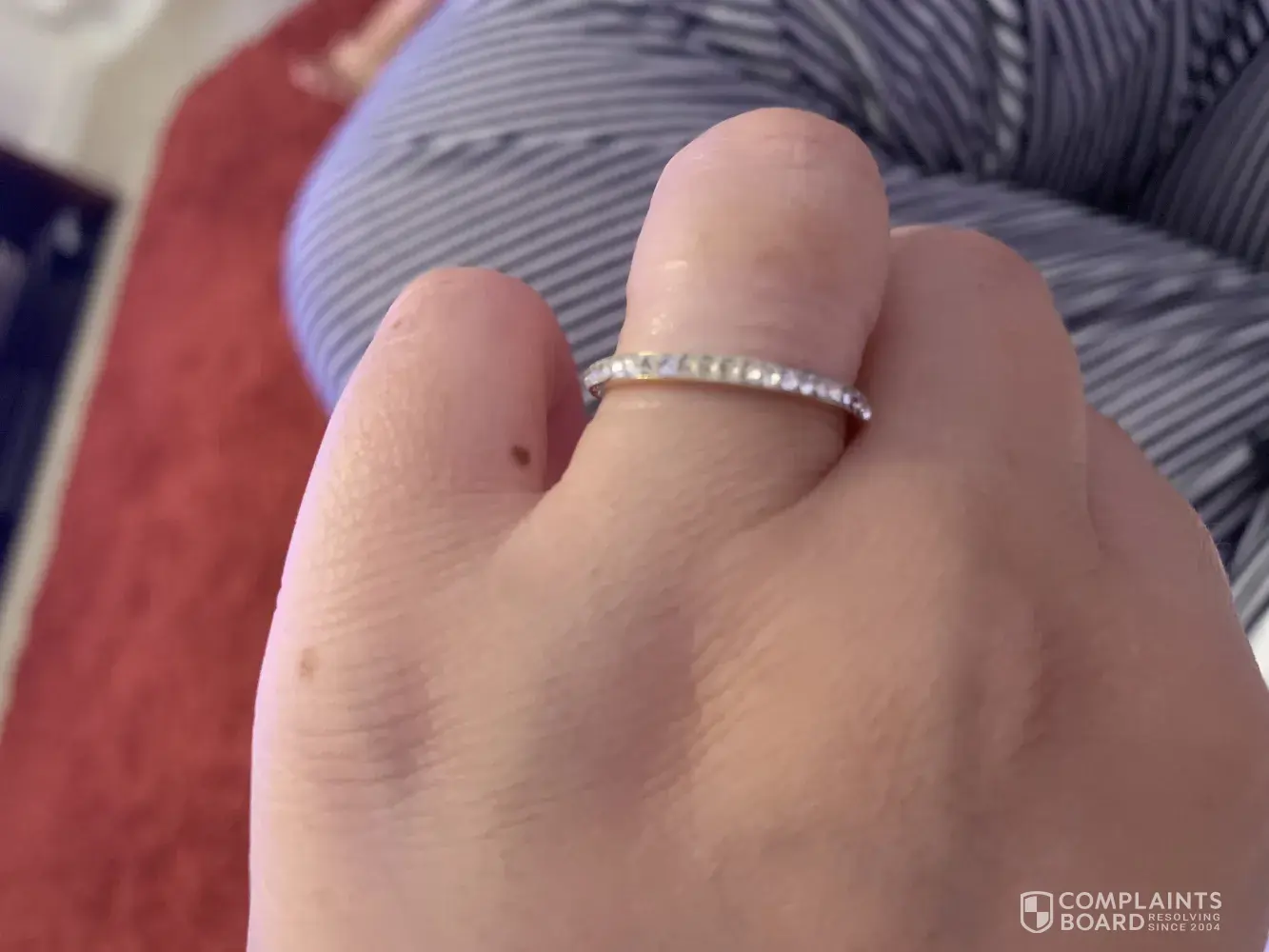 I bought a ring from your store on rolling oaks blvd Kissimmee around 1 month ago. I paid just over $50 for it in the clearance. Since I have had it 6 stones have come out of it. I'm most disappointed. This shouldn't happen. I no longer have the receipt for it as it was just what I was looking for and a perfect fit. I never for one minute thought I should keep a hold of the receipt because half of the stones would fall out within a few weeks. I have attached photographs to show the faulty ring.