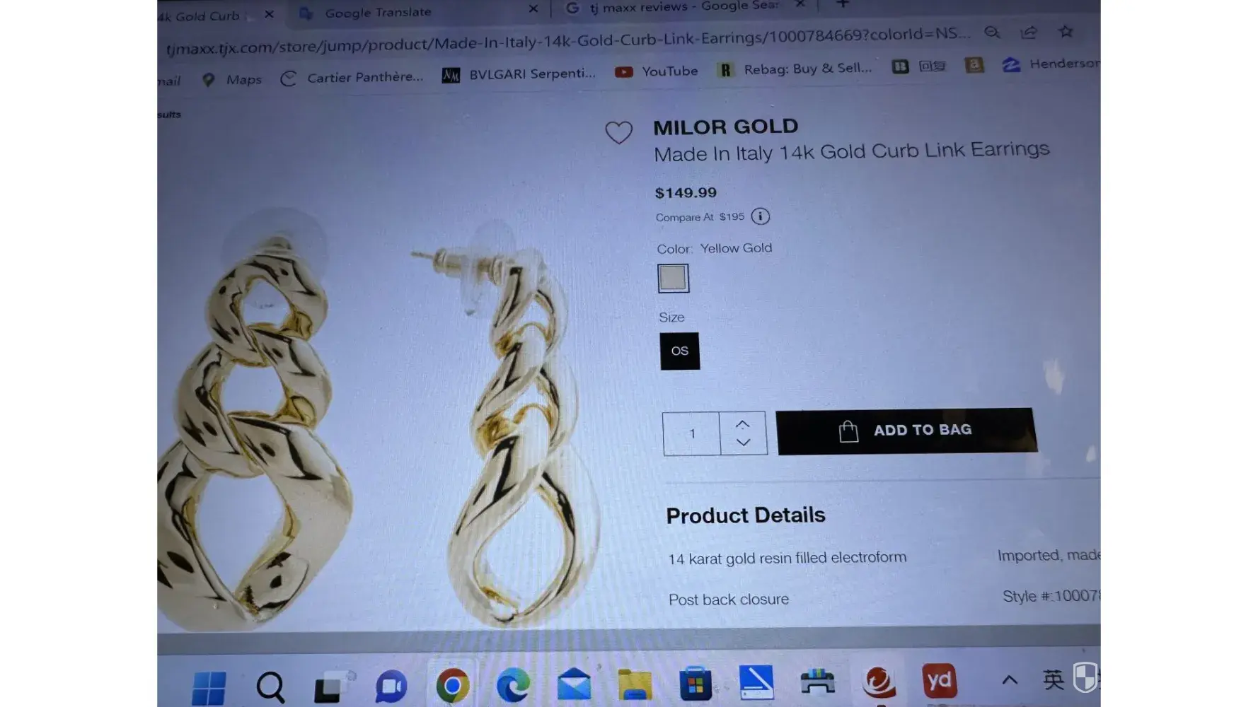 I will complain the jewlery coordinator is works for the TJ MAXX stores at 4640 w Sahara las vegas, NV 89102. This staff customer service is awful and terrible! I ordered a pair of MILOR GOLD earrings on the Tj Maxx website, which it is made in Italy 14k gold curb link earrings, with a $149 value, due to the color being too yellow, I went to this store...