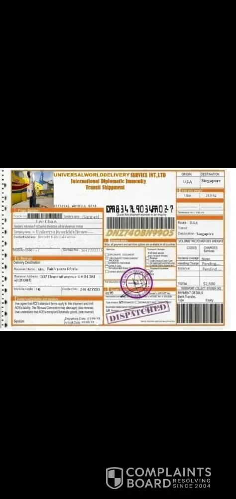 Thus, certain commissions must be paid as a duty via us which is for the immediate clearance of your package. For now, the main reference in the "status" of your package during tracking, this is according to the mode of operations in the Courier financial sector for delivery. We have already taken order number for this package from the Authority.