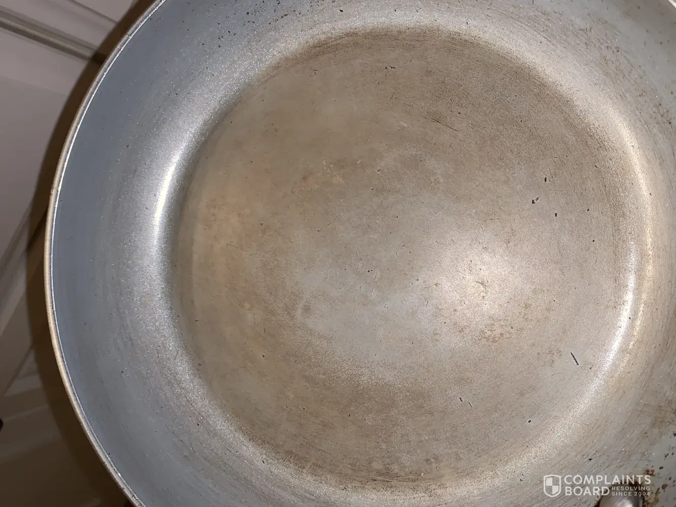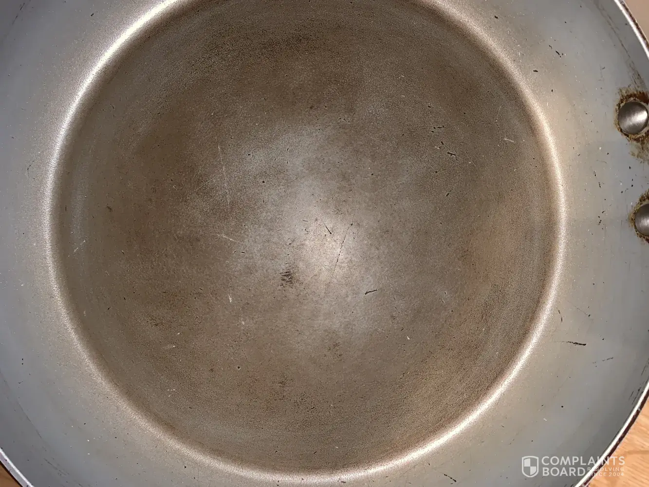 I have a 12" frying pan. I followed all directions, was careful in cleaning, but, as with all "non-stick" pans, eventually things start to stick. I did not use metal utensils, harsh abrasive cleaners or scrub with rough materials. I like the way the pan cooks and it's weight, as I have arthritis and it's not too heavy for me to lift (while empty). HOWEVER, I have burned a few things and recently used it with oil that absolutely turned the whole pan black. I almost threw it away but after 3 days of soaking, washing, scrubbing, and using Easy Off Oven Cleaner, I got it to be clean again and "re-seasoned" it and now it's OK to use. The company should advise people what to do when the non-stick finally wears off. If you use it a lot (as I did) that is inevitable. It's disgusting to think of all these frying pans in land fills for the next 1000 years. Mr. English is a multi-millionaire. You would think he could do a better job in seeing that his products can be used for a long time. Write to this company. Demand better.