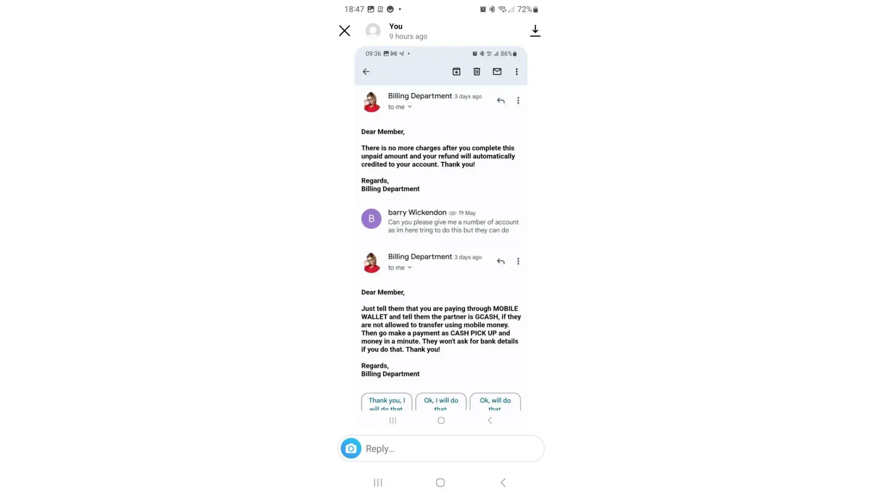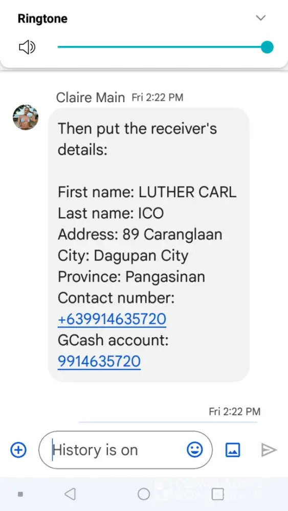 I received more messages from Adele pressuring me to go along with the process to get the card, "Don't worry, you'll get reimbursed within 5-7 days after I get the card."