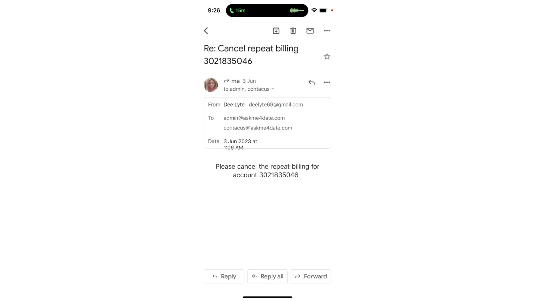 I received an email from the above person, here is what it contained"Good day! Your dating account is still active. There will be $59.99 charges on you weekly since you got multiple reports and being inactive. Cancel your account immediately to avoud getting charges. Kindly fill out this form to delete your account. > https://forms.gle/QchXC7nMyG7Rd6E37
