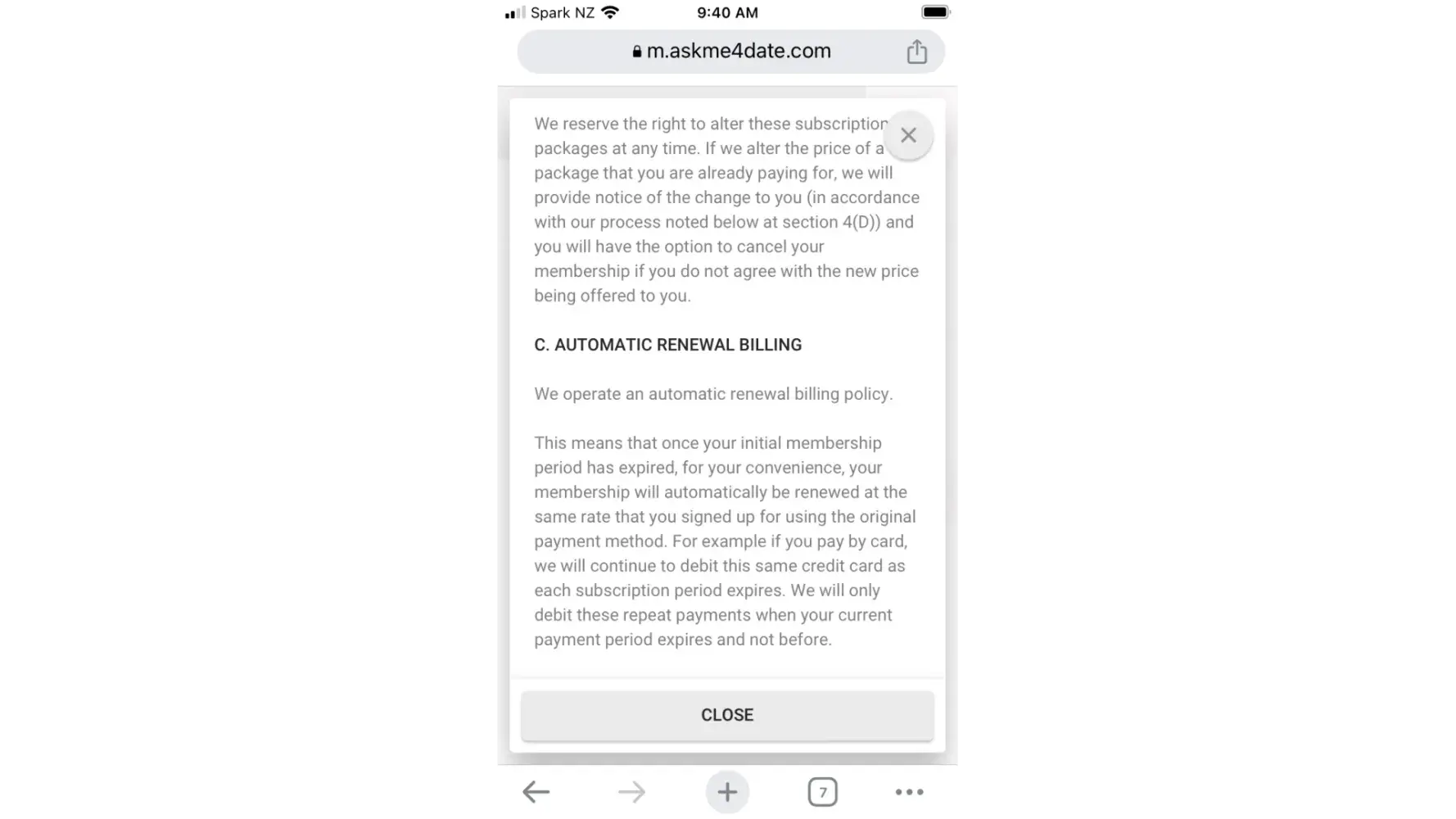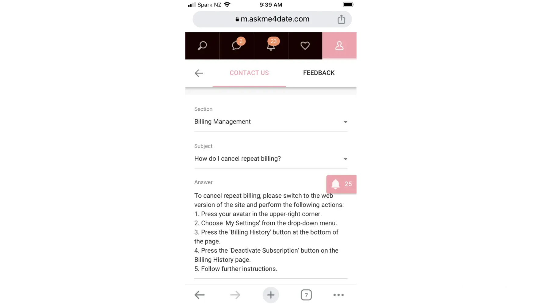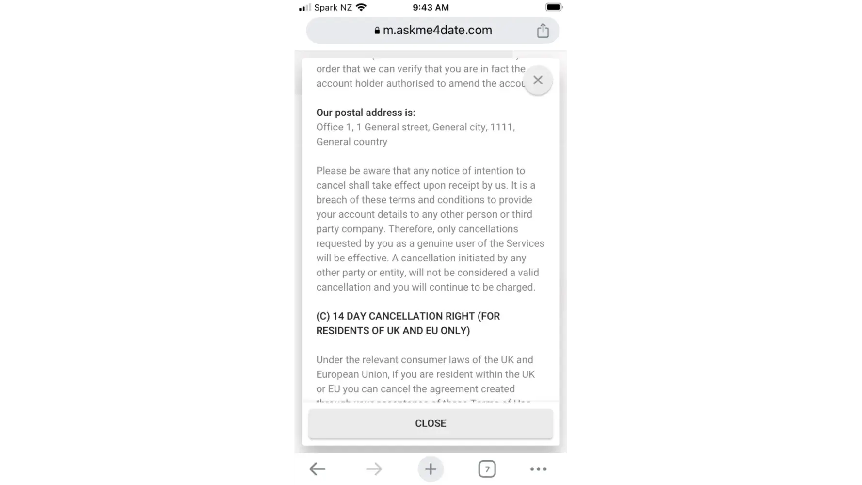 I subscribed for a 1-day subscription to askme4date.com on June 2nd, 2023. I immediately went into the settings to cancel the auto renewal, I followed all instructions to cancel my subscription with askme4date.com but my bank was still deducted a monthly subscription amount the next day. All my attempts to contact the company via any of their email addresses results in the emails bouncing back. The company address is fictitious; Office 1, 1 General Street, General City, 1111, General Country. I have reported this company to my bank and have cancelled my visa card, do the right thing and refund my money please.