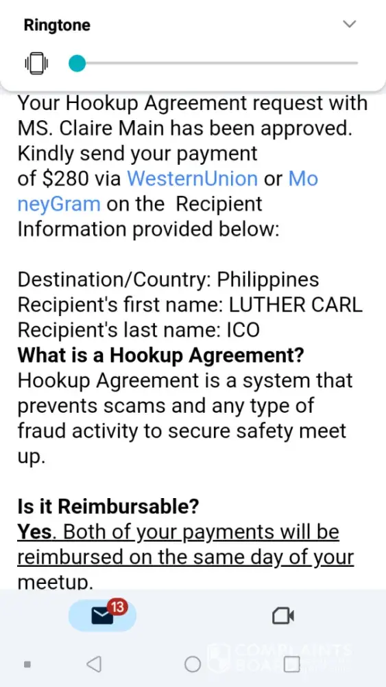 I am filling a complaint and want my money refunded,1000 dollars. On march eleventh a girl emailed me and said that she wanted to hook up and told me about the hookup rooms that she wanted to hookup at I checked it out and I thought everything was legit , I still am not positive about it now though. I paid for the room 550 dollars I think was what it cost per night and after I paid that I was told that I had to pay for insurance as nd I would be reimbursed as soon as I left the room . I ended up paying her half also but then she said that she still owed some money and I was told that if I sent 300 dollars we could meet and get the room, but when I tried to send it Western Union banned me from sending or receiving. I guess on something about him I guess but i still don’t know. But I can’t send him any more money western Union again so I told him that I just wanted to get my money refunded but he says I have to pay a 300 dollar prossesiing fee before I could get my money back. Is this true? I had to send my money to the Philippines every time also. I have no way to send anything else to him nor do I have it to send. I just want my money back. I have all of the conversations that we had and his name and everything still. Please help me if possible. Thank you.