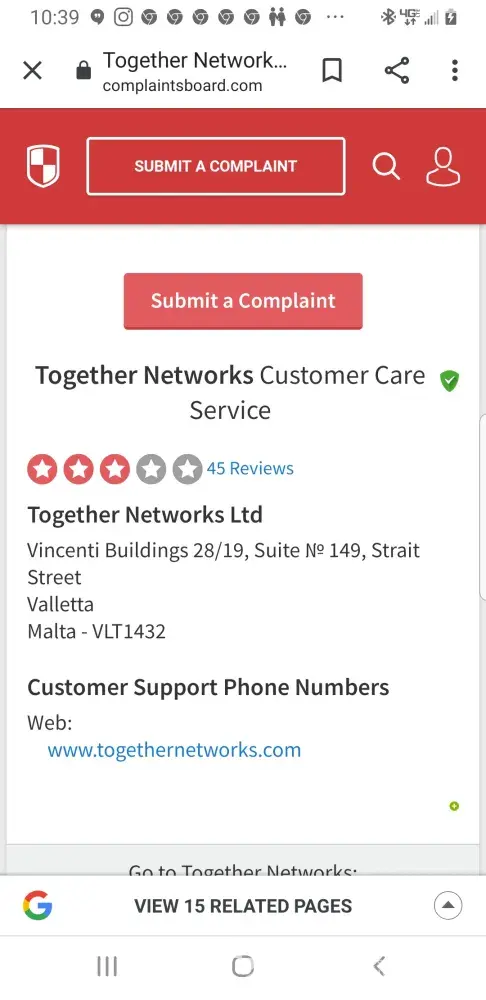 Together Networks addressVincenti Buildings 28/19, Suite â„– 149, Strait Street, Valletta, VLT1432, Malta