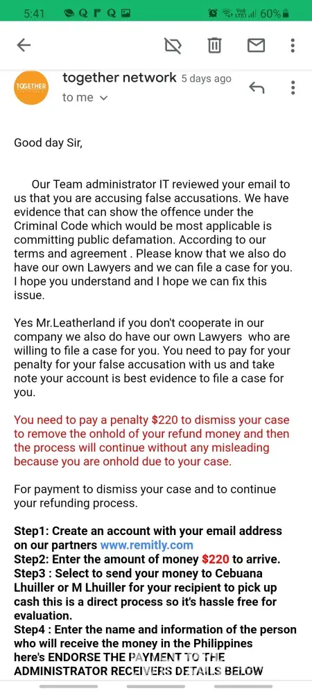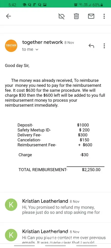 I trusted and paid nearly $1000 can dollars through my debit card and gift cards, for meet-up ID and verification process to legit looking, who they call themselves Admin for together network. The main character here who was pressuring