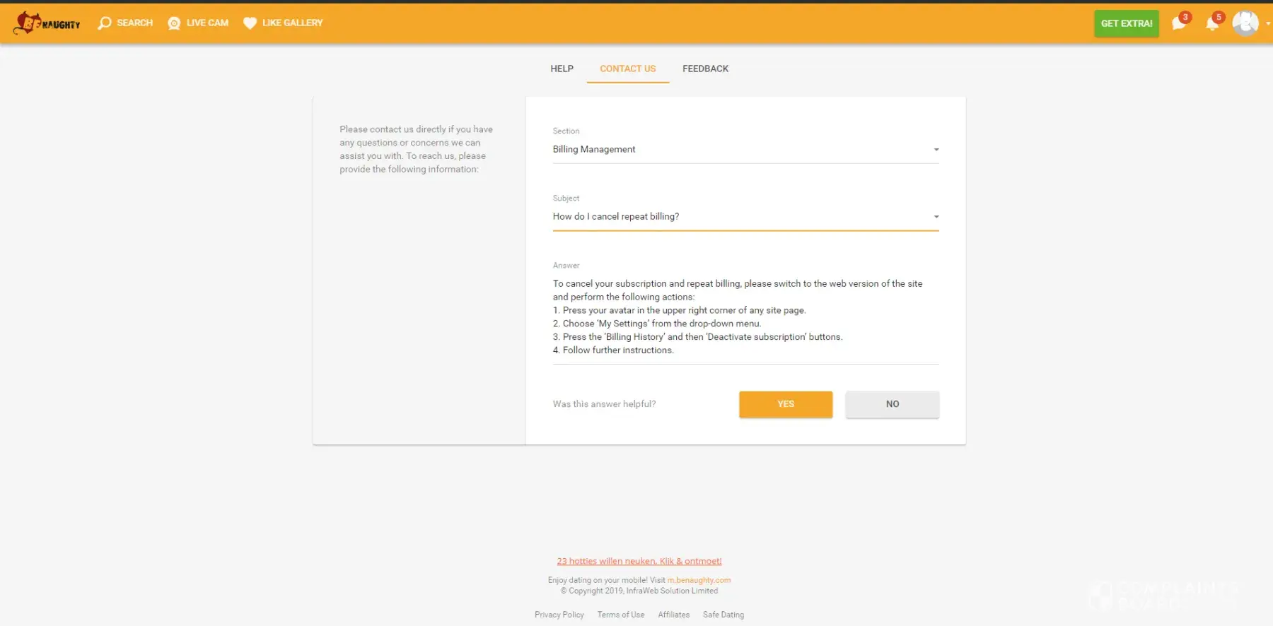 dating site subscription no real "opt-out".