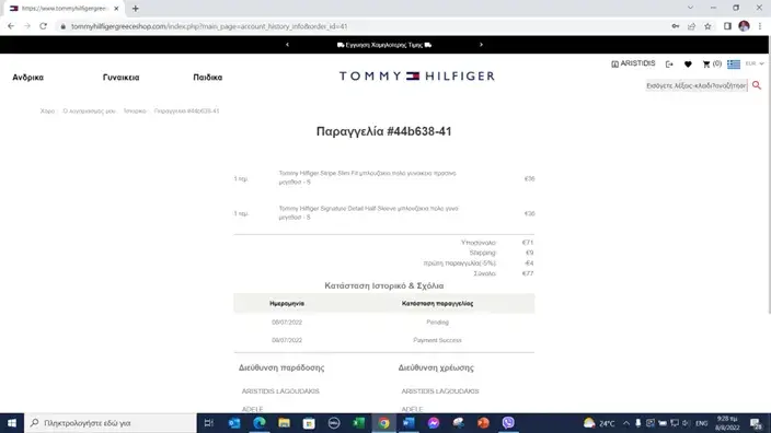 Oh Oh the payment doesnt say hilfiger or anything like that either. Im so not pleased. I was just trying to give my kids something that would be special to them as I dont know what the outcome of my illnesses will be. Im scared and that was something that was distracting for an hour plus and now im not even sure what to think. This is the first time ever I am purchasing from the website.