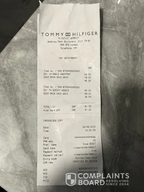 I visited the Wembley Park store in London on Sunday 6th August and purchased a complete Tommy Hilfiger tracksuit, I left and returned back to my home town which was 1 hour and 50 minutes away from this store.