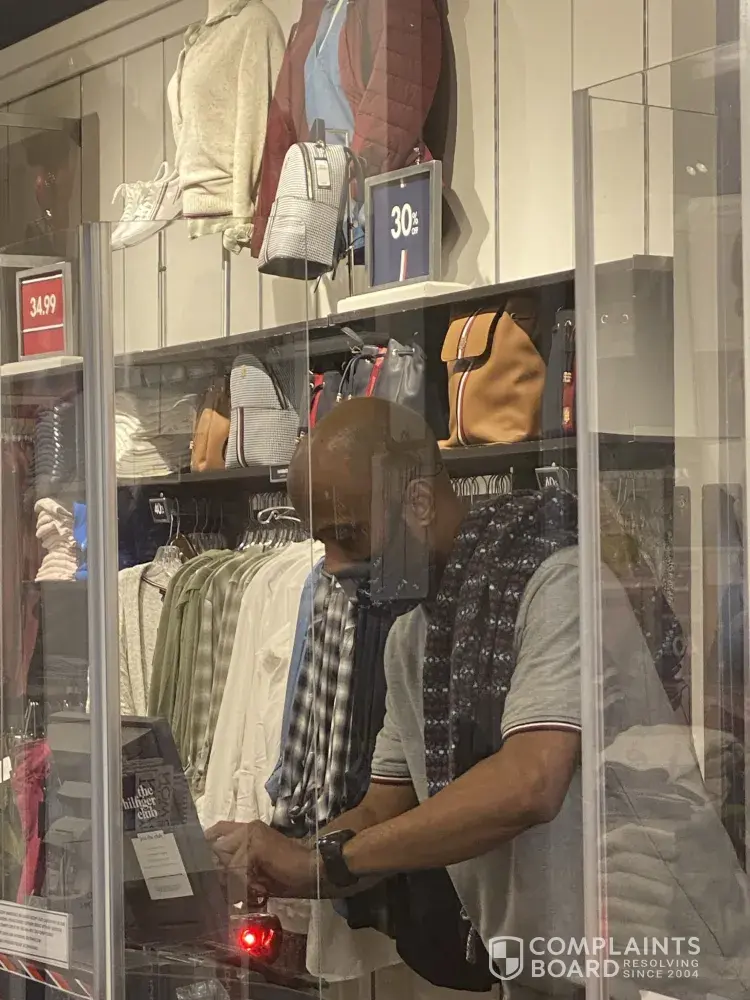 We were treated very disrespectfully during our visit to the store at tanger outlet . First, the employee kept telling us to adjust our masks. Our masks were covering the nose and mouth. Unlike his mask as proved in the attached photos. Second, the fitting rooms were closed. So the employee didn't let us put the shirt just on top of our cloth outside to make sure it fits. We were in DC for just one day so the option to buy and return wasn't feasible for us. There was an alteration with the employee and the person from our group left to wait outside while the rest pay. I was waiting with my toddler to the side while waiting for the other to pay. Again the employee approached me to move. Although, there was only one other customer shopping and I wasn't in any person way.