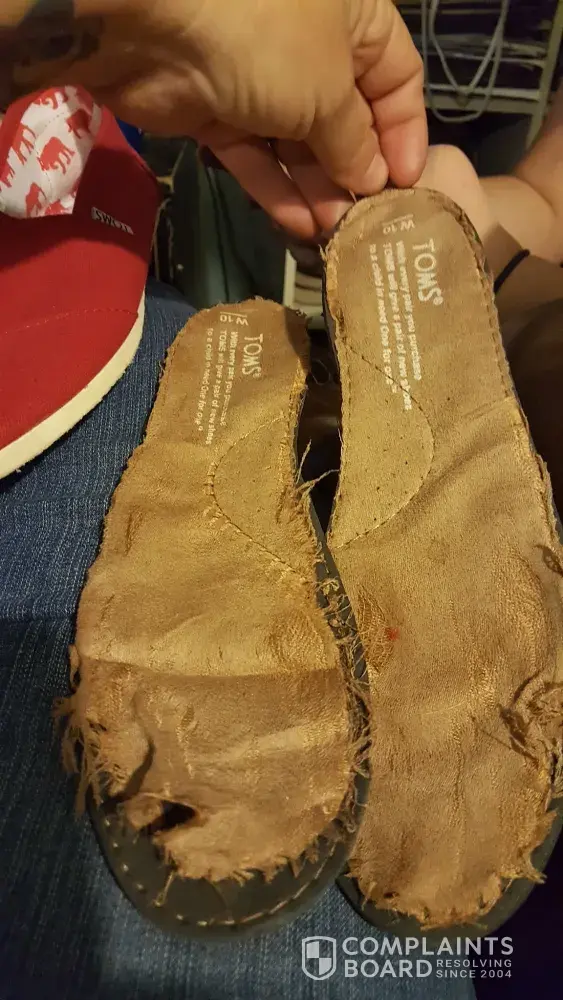 I have ordered a pair of shoes from www.toms.com website and when my shoes arrived they were in a terrible condition, sole was completely ripped off.